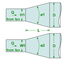 The length L of the fitting would therefore be based on the dimensions of the ducting and the limits above.